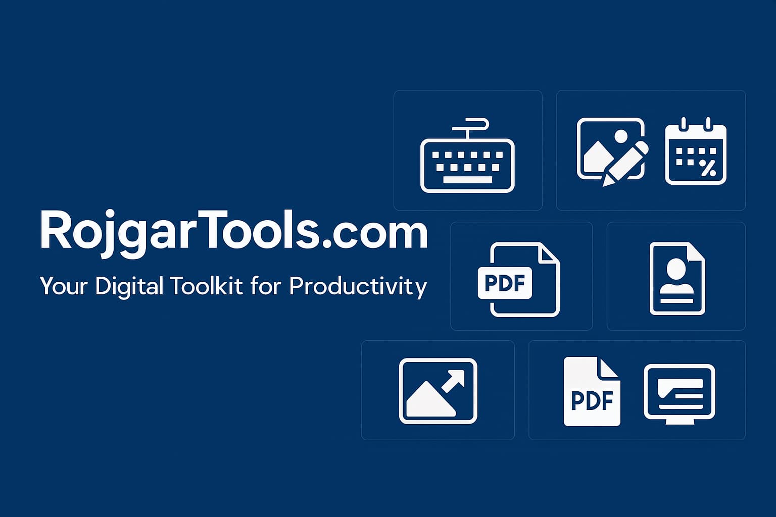 RojgarTools.comYour Digital Toolkit for Productivity CV Maker Images to PDF converter Ultimate PDF to Images converter Photo Signature joiner Add Name and Date in photo Add Name and Date in Image Photo + Signature + Name + Date Image Resizer Photo Resizer Image format converter Bulk Image Format Converter Image Resizer & Format Converter Typing Test in English Typing Test in Hindi Typing Test in Multiple Languages Age Calculator Simple Resume Maker Biodata creator for marriage Images to PDF converter Images to PDF Converter Pro Home Loan EMI Calculator Take home salary calculator | CTC Calculator Car loan EMI calculator In hand salary calculator